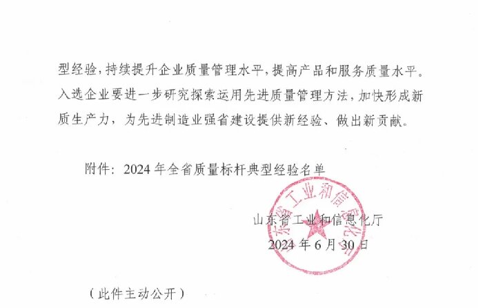 全省質(zhì)量標(biāo)桿是由山東省工信廳主導(dǎo),山東省質(zhì)量協(xié)會組織評選的省級榮譽(yù),旨在強(qiáng)化提升企業(yè)質(zhì)量管理水平,推動培育和建設(shè)產(chǎn)品卓越、品牌卓越、創(chuàng)新領(lǐng)先、治理現(xiàn)代、具有核心競爭力的一流企業(yè),代表各行業(yè)、各領(lǐng)域的優(yōu)秀質(zhì)量示范。2024年主要聚焦質(zhì)量管理體系升級、關(guān)鍵過程質(zhì)量控制、產(chǎn)業(yè)鏈供應(yīng)鏈韌性與安全和質(zhì)量管理數(shù)字化進(jìn)行遴選。