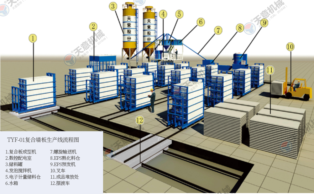 TYF-01型立式復(fù)合墻板生產(chǎn)線,設(shè)備占地面積小,產(chǎn)品一次成型,產(chǎn)量高。主機(jī)配有自動(dòng)行走系統(tǒng),設(shè)備運(yùn)轉(zhuǎn)更簡單快捷,大型固定式攪拌設(shè)備,攪拌料漿更均勻,澆注效率更高。